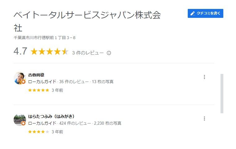 ベイトータルサービスジャパン株式会社の良い口コミも見てみましょう。