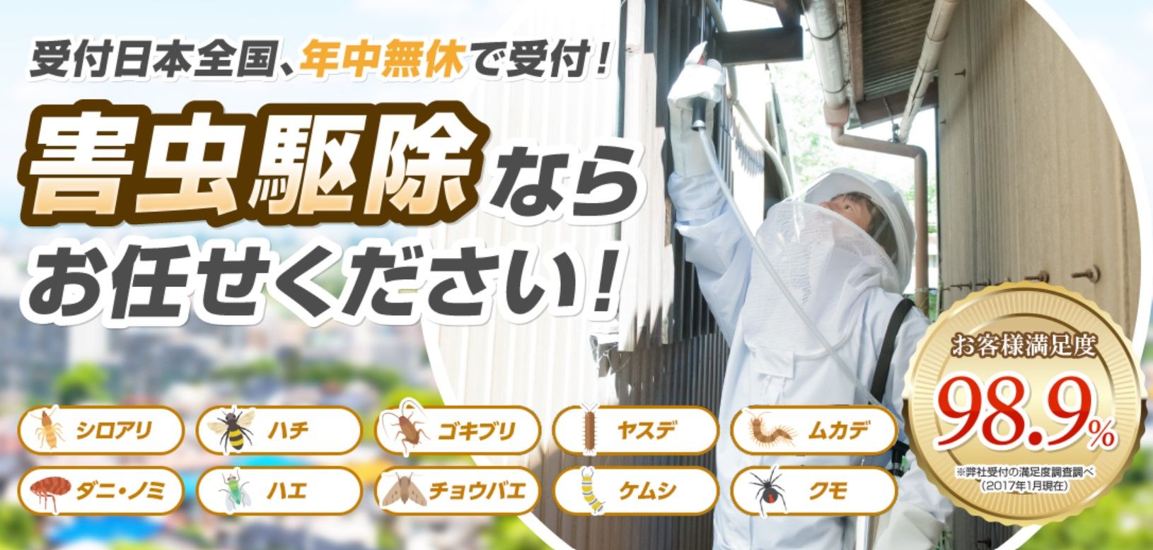 害虫の生活救急車は、なんとお客様満足度98.9%を誇っています。