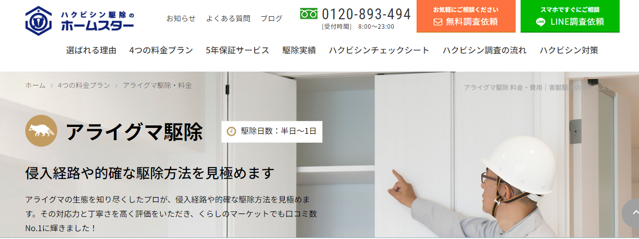 - ホームスターの害獣、害虫駆除実績における信頼性がわかる