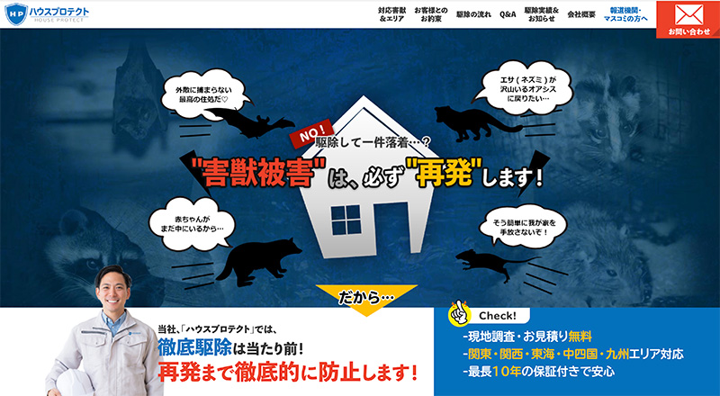害獣による被害を一刻も早く解決したい方、再発を防止したい方は、ぜひハウスプロテクトに相談してみましょう。