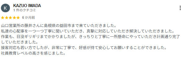 福岡・熊本・大分・佐賀・広島・山口・岡山・島根の8県に対応しています。Googleビジネスプロフィールの平均評価は星4.7と非常に高く、地域の方からの信頼も厚いと考えられます。しかし、本当に信頼できる業者でしょうか。