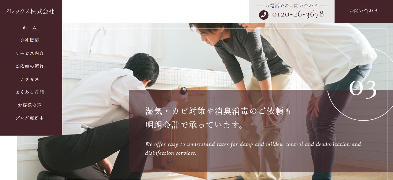 害獣、害虫、害鳥のあらゆる動物の駆除を得意としている駆除業者です。『完全自社施工』『現地調査、見積無料』『追加料金なし』の3つの約束を売りとしており、スピーディーに対応しています。