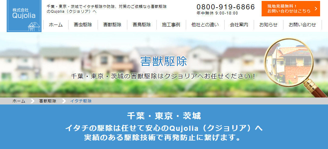 Qujoliaは千葉県にある会社ですが、千葉県以外にも東京都、茨城県を中心に関東全域に対応しています。年間1万件以上の作業実績があり、年中無休で対応しています。