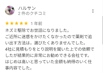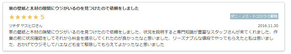 生活110番を見ると、三共リメイクはさまざまな害虫案件にも丁寧な対応であったと、信頼できると口コミが多数ありました。