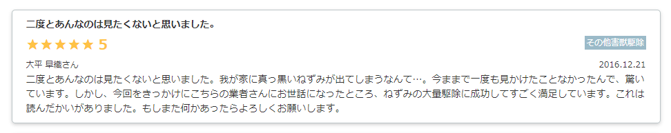 生活110番を見ると、三共クリーンシステムはさまざまな害虫の駆除に対応してくれた実績が記載されていました。