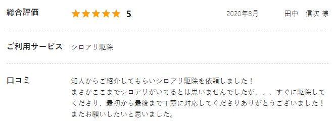 - 駆除後のアフターフォローもしっかりしていてほしい人