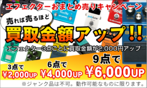 このキャンペーンでは、エフェクター3点ごとに買取金額が2,000円アップして非常にお得です。