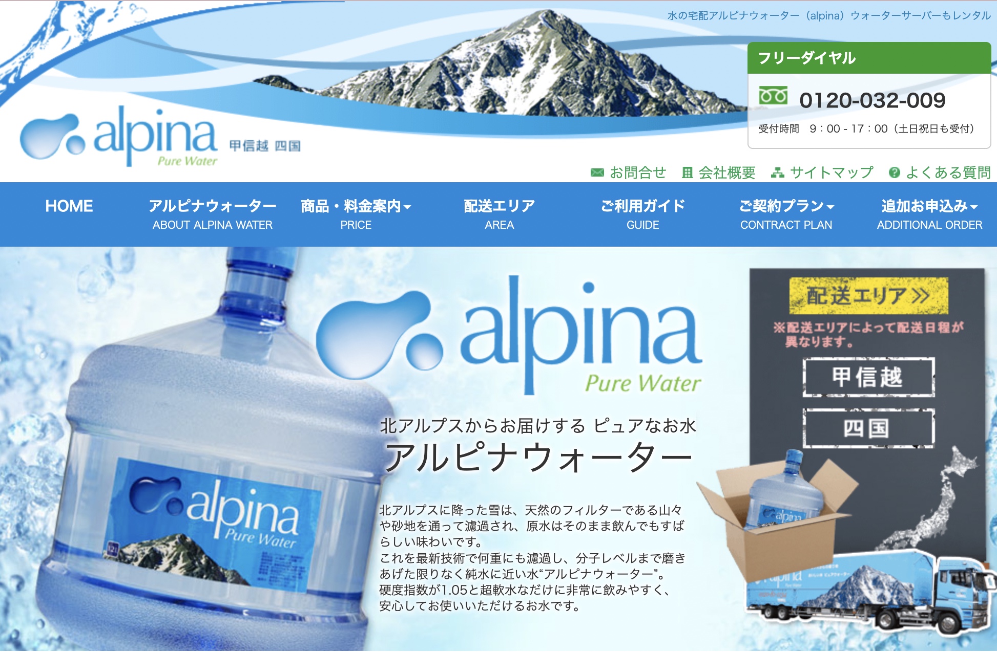 公式サイト:アルピナウォーター 甲信越・四国(山梨・長野・新潟・愛媛・香川・徳島・高知)おいしい水宅配 ウォーターサーバーも楽楽レンタル